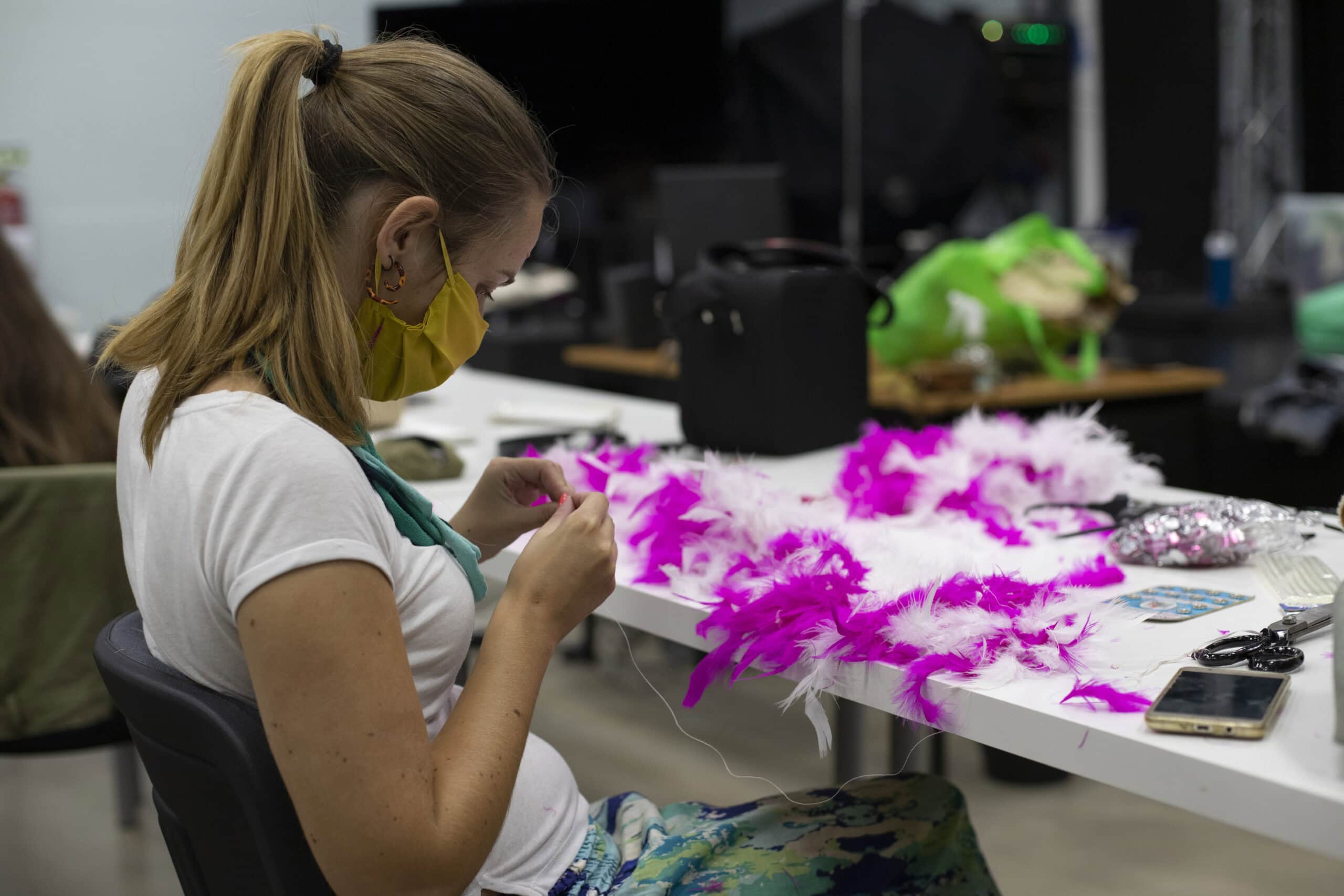Exercícios práticos de construção de adereços com diferentes materiais.